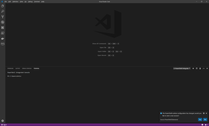 - With the PowerShell extension installed we can use the integrated terminal for PowerShell Core 6