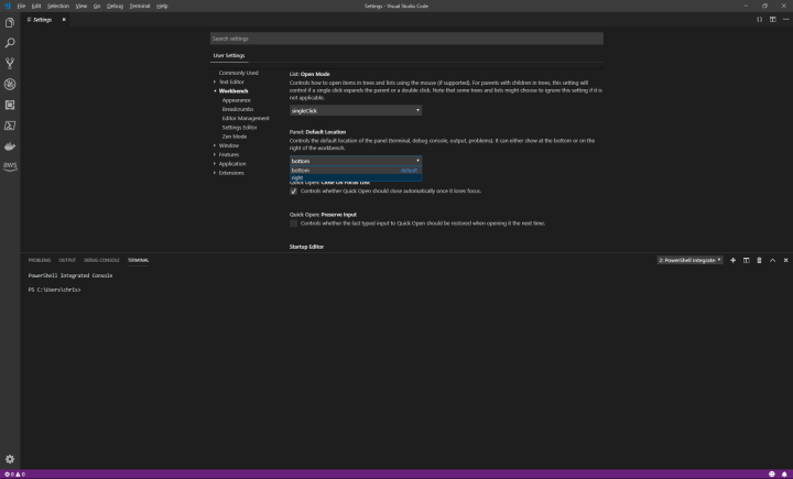 Personally I like having the Terminal pinned to the right instead of the bottom. I can see more of my code and run it in either the PS Integrated terminal or WSL terminal. You can even split them to view both for cross-platform PS development.